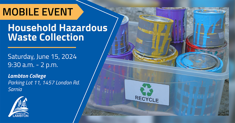 Bring your corrosive, toxic, reactive, and flammable household hazardous waste to this event for safe, FREE disposal. Visit www.lambtononline.ca/hhw for more information, including a list of accepted items.