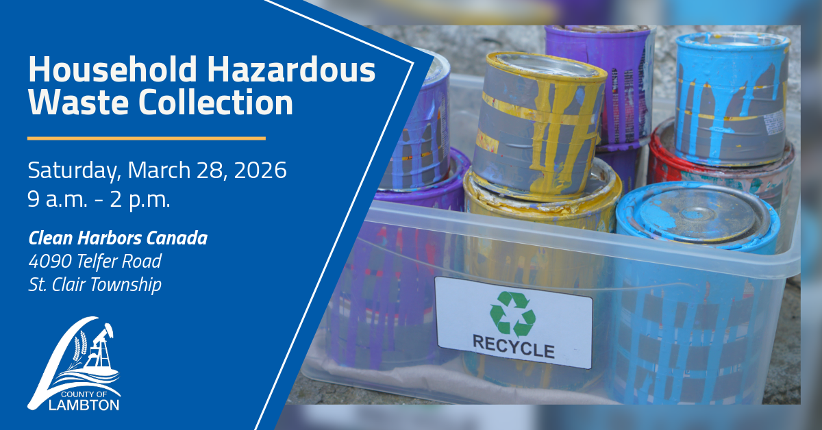 The County of Lambton, in conjunction with Clean Harbors Canada Inc., hosts several HHW collections events each year. The events give Lambton County residents an opportunity to properly dispose of potentially dangerous waste from their homes and...